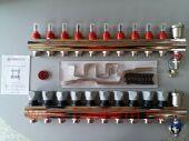 коллектор обратки с термостатическими клапанами и возможностью ручной регулировки.